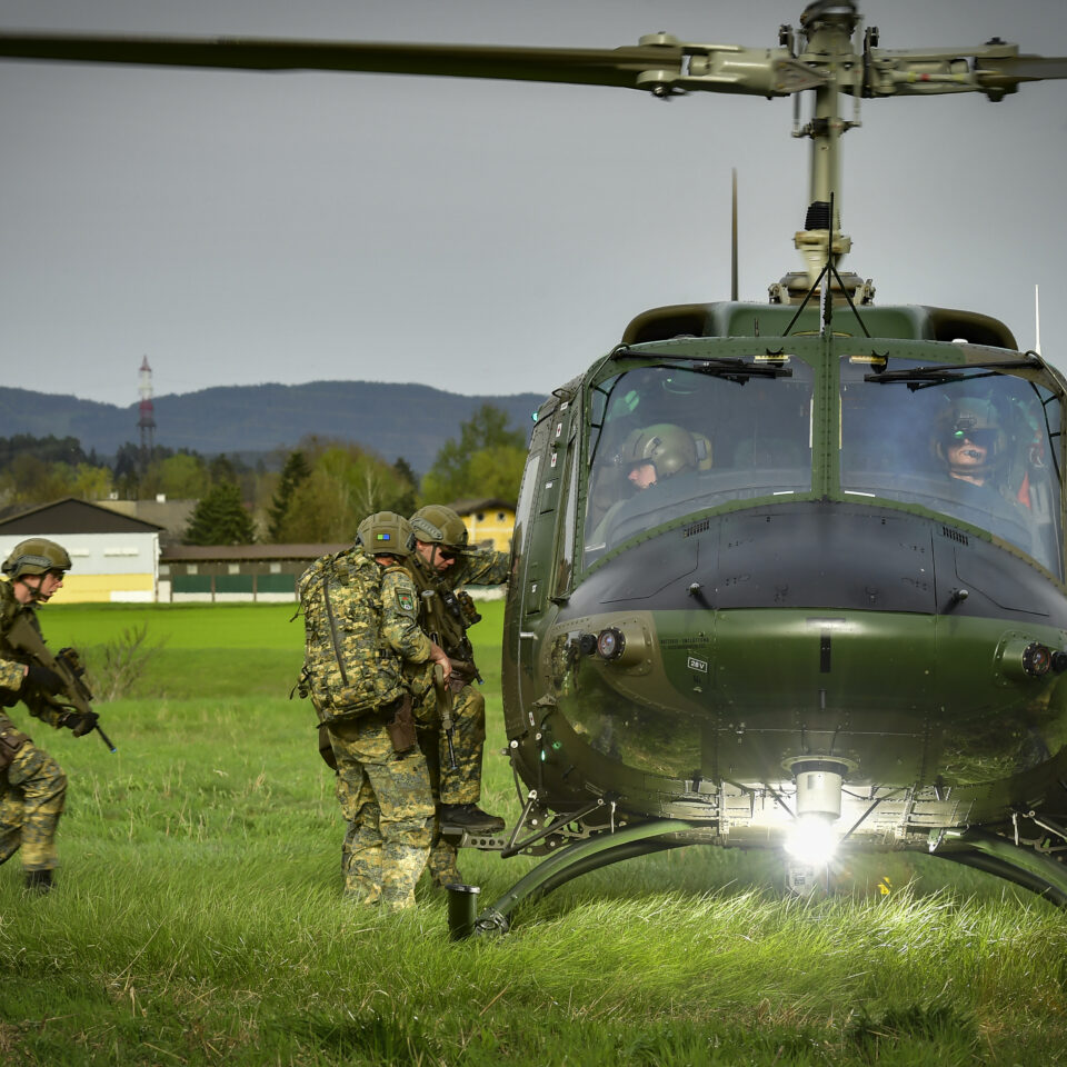 Tag 2: Zonenhopping und Nachtlandungen Der zweite Tag stand im Zeichen des „Zonenhoppings“ in St. Veit an der Glan. Die Soldaten übten anspruchsvolle Landetechniken wie Schwebelandungen und Hanglandungen, die nötig werden, wenn Hubschrauber aufgrund schwieriger Bodenverhältnisse nicht vollständig aufsetzen können. Nachmittags trainierten die Truppen das Errichten eines temporären Kontrollpunkts nach einer Luftlandung. Der Tag endete mit Nachteinweisungen und -landungen im Raum Karnburg, wobei Nachtsignalmittel wie der Infrarot-Flasher und Buzz Saw zum Einsatz kamen.