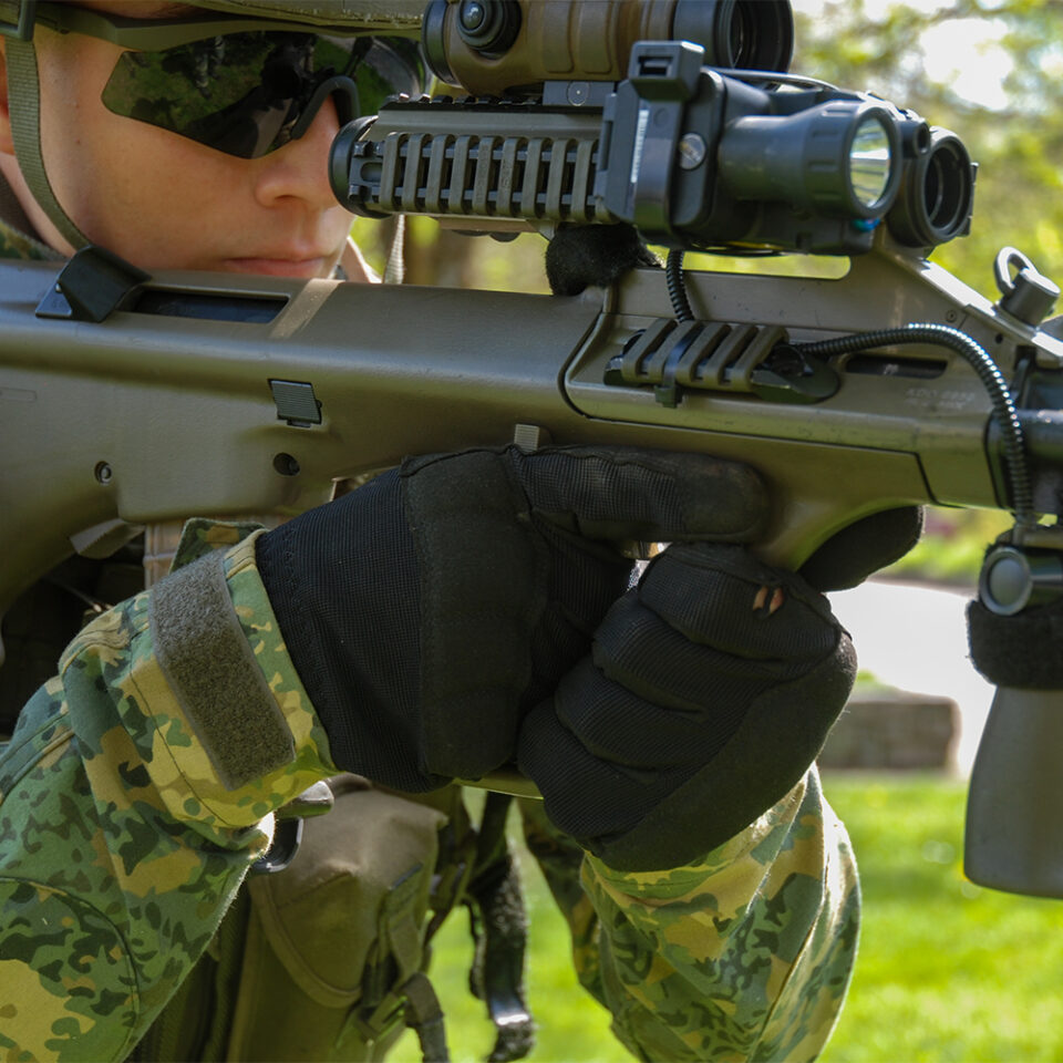 - Die Handfeuerwaffe unter Einhaltung der Sicherheitsbestimmungen handhaben, dem Auftrag und dem Gelände entsprechend in Anschlag bringen und reinigen.