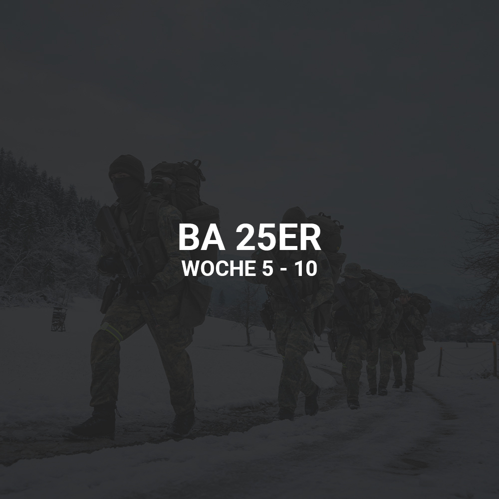 Bei der Basisausbildung zum 25er handelt es sich um eine Vorbereitung der Grundwehrdiener oder Quereinsteiger, die in weiterer Folge als Einsatzsoldaten beim Jägerbataillon 25 ihren Dienst versehen möchten.